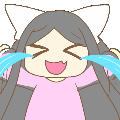 An adorable anime wolf girl laughing with tears of joy, expressing extreme amusement and 'LOL' moments.