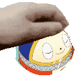 Teddie Kuma from Persona 4 gets a gentle head pat, blinking happily with a big smile in this adorable animated sticker.