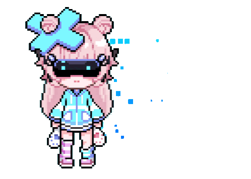 a pixel art drawing of a girl wearing a virtual reality headset .