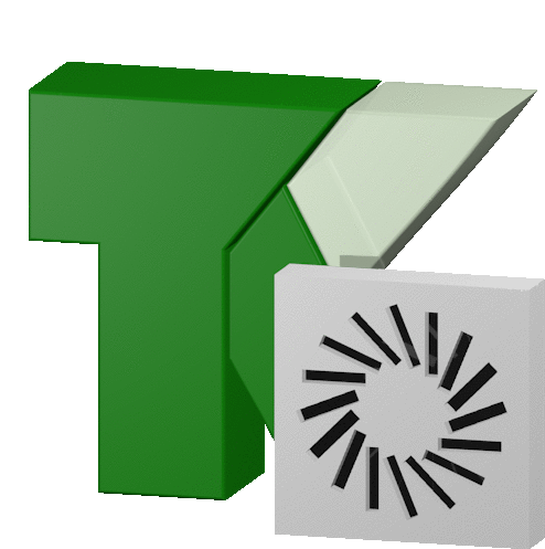 a green letter t sits next to a white square