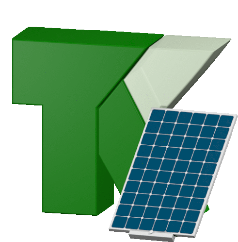 a green letter t is next to a blue solar panel