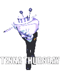 Mr. Tenna, the pixel art character with a TV head, dances in a tuxedo, celebrating Tenna Thursday.