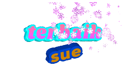 Animated sticker featuring the words 'Terbaik' (best) and 'Sue' with falling snowflakes, perfect for expressing praise.