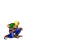 Terry Bogard unleashes his iconic Power Geyser attack, a powerful column of fire erupting from the ground in this classic fighting game animation.