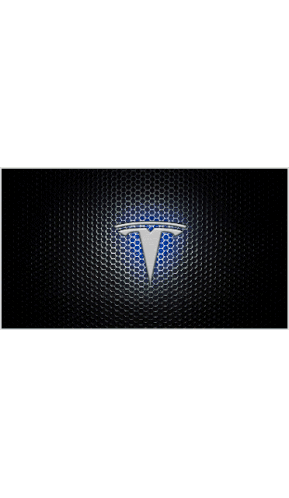 Dynamic sticker featuring the iconic Tesla logo, a sleek blue Model 3, and a close-up of its wheel.