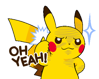 Pikachu, the electric-type Pokémon, stands happily with a playful expression and raised hand.