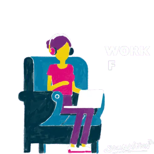 Animated red text spells out 'Work From Home' with a fun, bouncy motion, perfect for WFH messages.