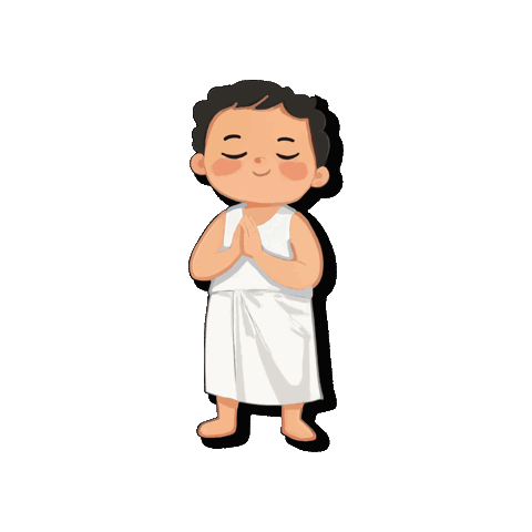 Animated Thambi, a Hindu boy, in a white garment, praying with closed eyes and hands together in devotion.