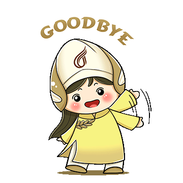 Thanhtin, a cartoon character, waves goodbye while wearing a white hat, perfect for a friendly farewell.