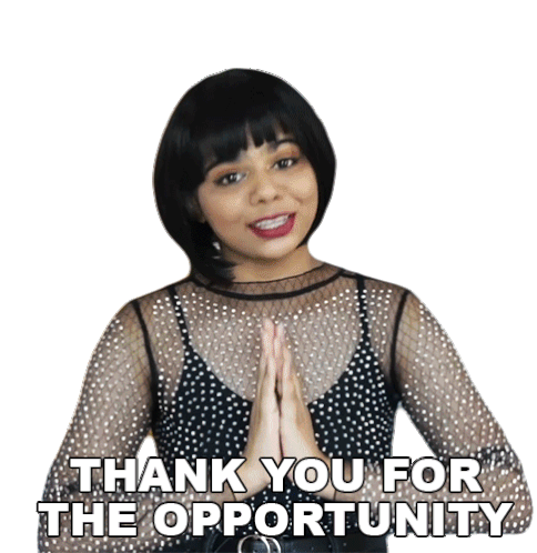 Shreya expresses gratitude with a 'Thank You For The Opportunity' message, performing a namaste and clap gesture.