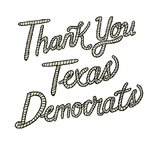 An animated sticker with rope-style text saying 'Thank You Texas Democrats', appreciating their fight for voting rights.