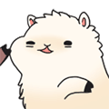 A cute Thaonema llama with a sad expression holding a knife in its mouth, looking squishy and fluffy.