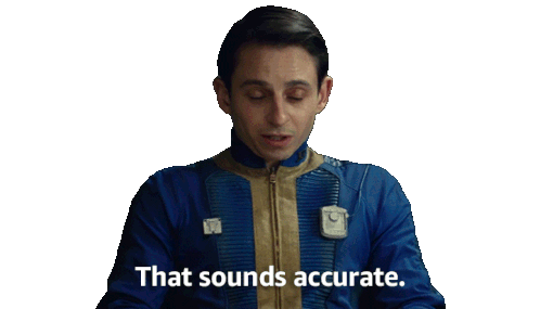Norm, from Fallout, nods and says 'That sounds accurate' with a knowing expression, agreeing with a statement.