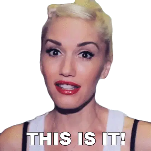 Gwen Stefani reacts with a contemplative look as the caption 'THAT WAS THE MOMENT' appears.