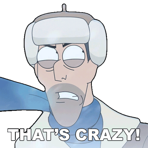 Rip Digman, the character from Comedy Central, reacts with wide eyes and an open mouth, exclaiming 'That's Crazy!'