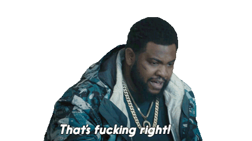 Deverin Washington, in a blue jacket, emphatically declares "That's fucking right!" with a confident expression.