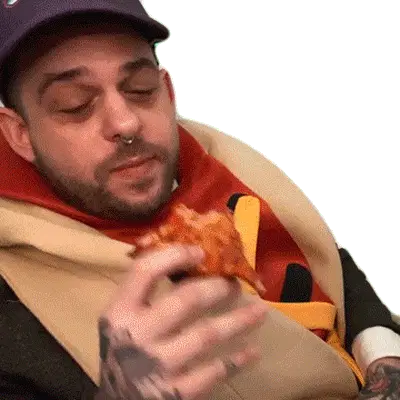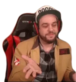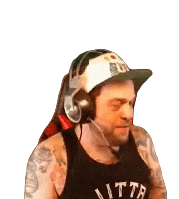 Doodybeard, wearing headphones and a hat, expresses 'That's Great And All' with a shrug and a smile.
