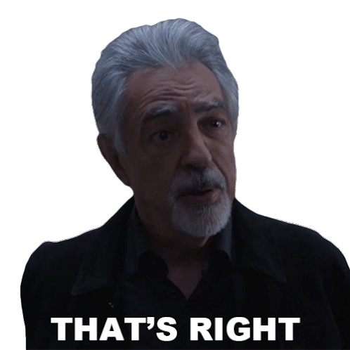 David Rossi from Criminal Minds confidently says 'That's Right,' affirming a statement with a knowing look.