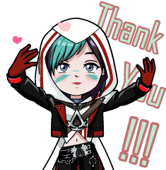 a cartoon of a girl with a hood saying thank you !!!