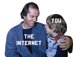 A meme featuring Jack Nicholson as Jack Torrance from The Shining, with text overlays "THE INTERNET" and "YOU," depicting a menacing internet.