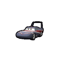 a cartoon car with a british flag on it is sitting on a white surface .