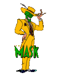 A cartoon version of Jim Carrey's The Mask character emerges from a spinning, tornado-like graphic with the word "MASK".