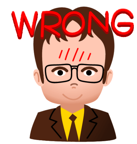 Dwight Schrute from The Office reacts with a frustrated expression as the word 'WRONG' appears above his head.