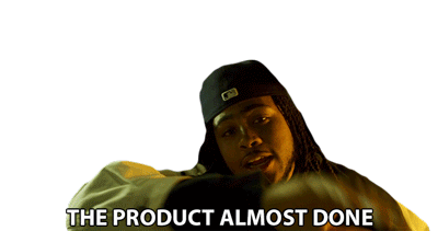 Childish Major delivers the line 'THE PRODUCT ALMOST DONE', expressing progress and anticipation for completion.