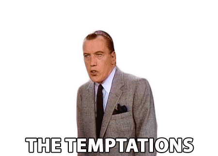 A man announces The Temptations on The Ed Sullivan Show, with the group's name appearing as a caption.