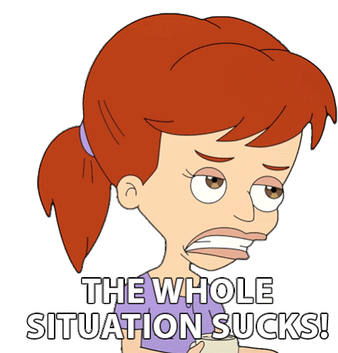 Jessi Glaser from Big Mouth expresses frustration, stating "The whole situation sucks!" with a distressed look.