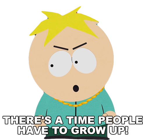 Butters Stotch from South Park angrily declares, 'There's a time people have to grow up!'