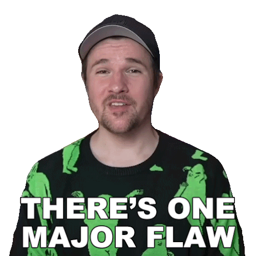 Jimmy, wearing a green alien sweater, points out a major flaw with a serious expression.