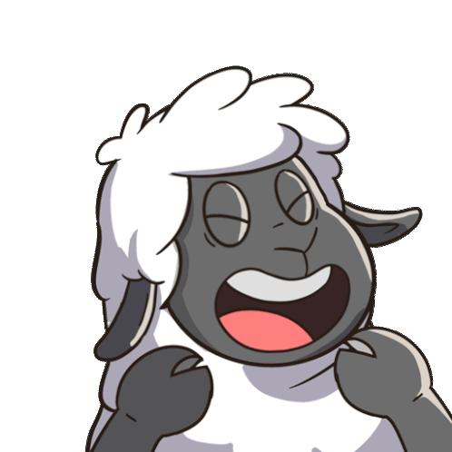 The Sad Times sheep joyfully celebrates with arms raised and confetti falling, expressing extreme happiness.