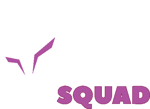 Animated 'SQUAD' text sticker by Thevipergroup, featuring dynamic purple and teal colors.