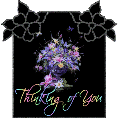 A heartfelt greeting card featuring a vase of colorful flowers and the message 'Thinking Of You'.