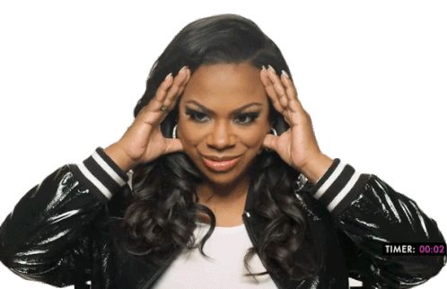 Kandi Burass reacts with a 'thinking what' expression, hands on head, as a timer counts down.