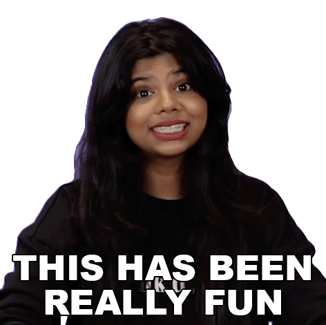 Shreya from Buzzfeed India expresses enthusiasm, saying 'THIS HAS BEEN REALLY FUN' with hand gestures.