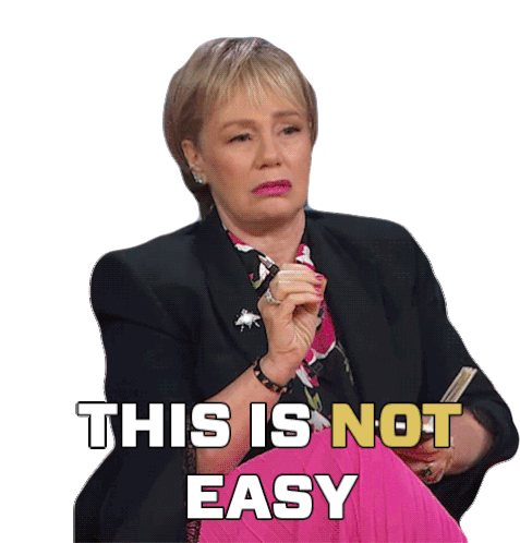 Arlene Dickinson expresses that "This Is Not Easy" with a concerned expression and a subtle hand gesture.