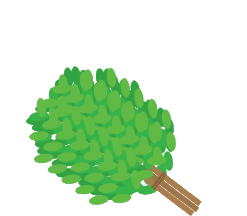 An animated sticker featuring a traditional Finnish sauna whisk (vasta/vihta) with leaves gently detaching, symbolizing relaxation.