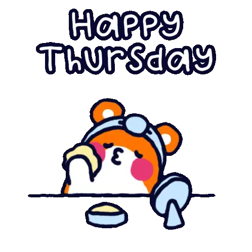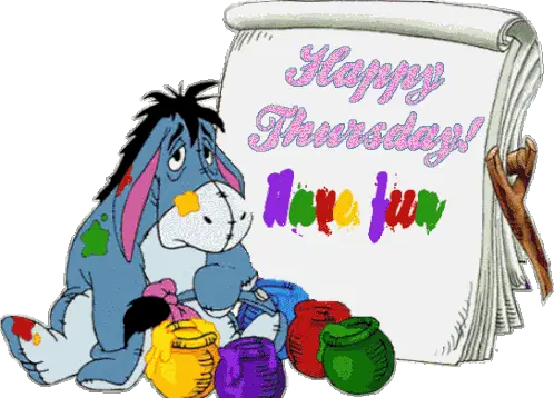 A cheerful animated sticker wishing a happy Thursday, adorned with vibrant flowers and sparkling glitter effects.