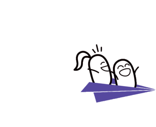 Two happy Tic Tac-like characters ride a paper airplane, with a speech bubble saying 'LET'S GO!'.