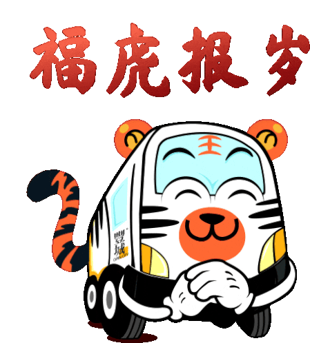 A cheerful Gaincity tiger character extends Chinese New Year greetings, wishing good fortune for the Year of the Tiger.