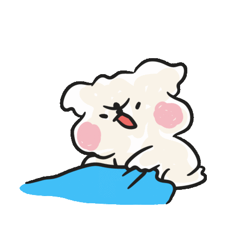 A fluffy cartoon character with pink cheeks looks frustrated and angry, pulling a blue blanket. It conveys a "hurry up" feeling.