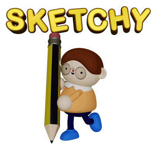 Timothy Winchester's 'Peopleiknow' sticker features a cute 3D character holding a giant pencil, with 'SKETCHY' text.