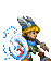 Tiny Thor, the pixel art hero from Indieforge, ready for action with his shield and feathered hat in this retro gaming sticker.