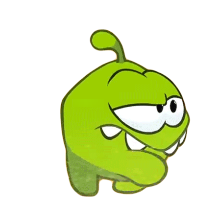 Om Nom transitions from a tired, exhausted look to a surprised and shocked expression, showing a range of emotions.