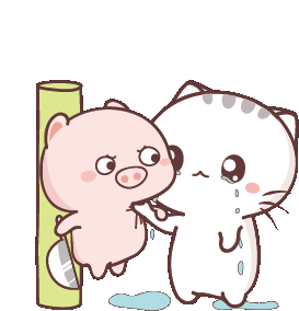 Tkthao219 Ami sticker featuring a cute crying cat being observed by a concerned pink pig.