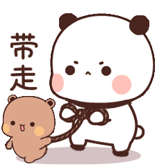 Tkthao219's Bubududu panda gently pulls a smaller brown bear on a leash, ready to take it along.