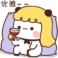 Tkthao219's Bubududu panda character sits elegantly on a pillow, holding a wine glass, exuding a relaxed and refined mood.
