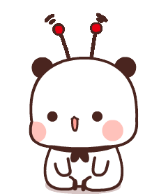 Tkthao219's Bubududu, a cute cartoon panda with blue-tipped antennas, sits and looks around curiously.